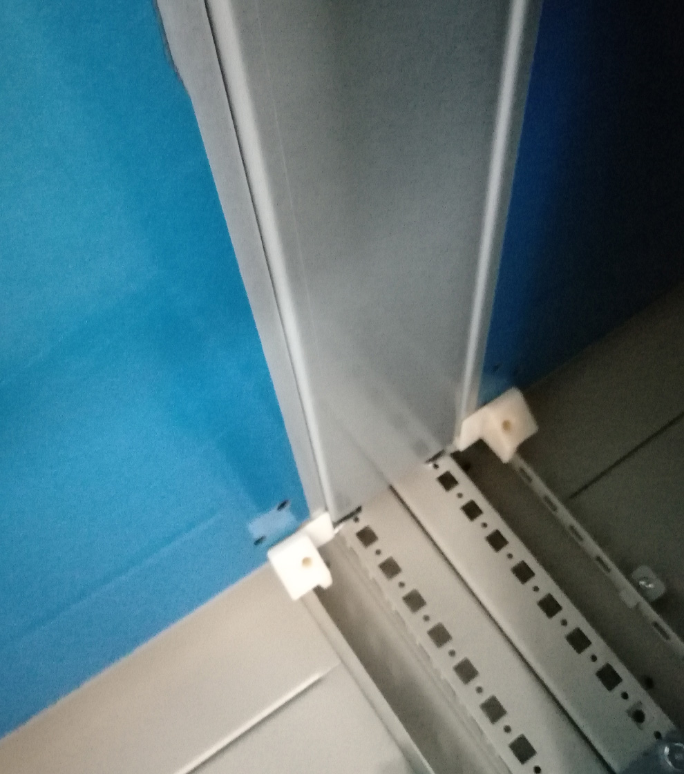 外部安裝標準MS830大把鎖,打開門以后內(nèi)部盡顯貼藍膜固定安裝板,美觀大氣實用三通連接安裝板之間填充板無縫拼裝,安裝更完美!